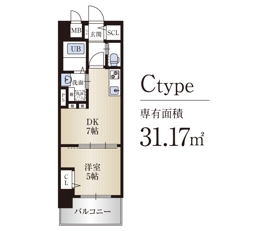荷物が多い単身者の方にも嬉しい、1DK・1LDK。