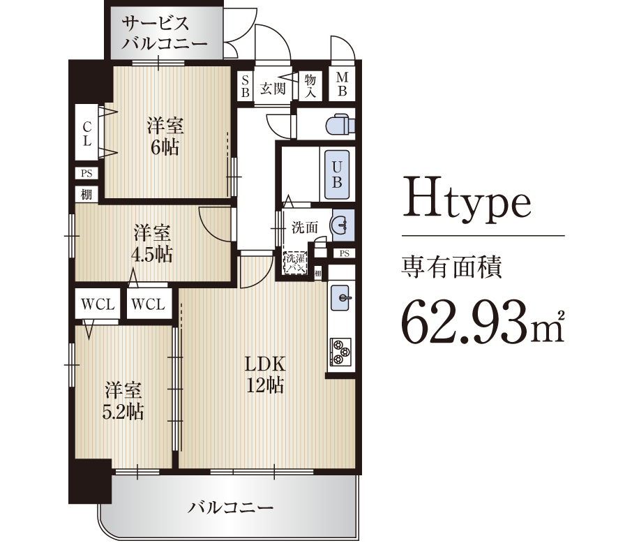 | 専有面積 | 【1DK】31.13㎡、31.17㎡ 【1LDK】35.42㎡ 【2LDK】51.20㎡、51.22㎡ 【2SLDK】62.00㎡ 【3LDK】62.93㎡ |